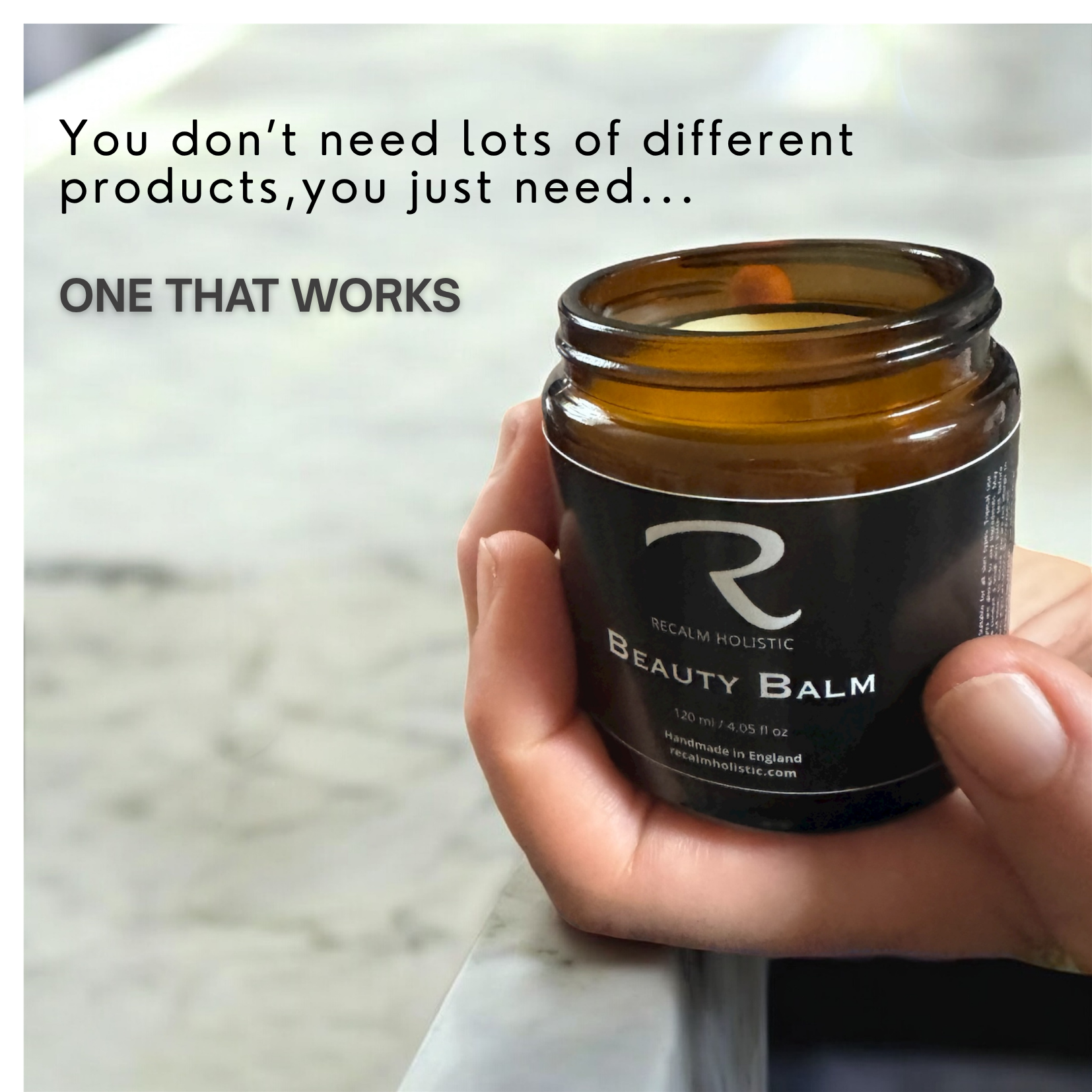 In a world overflowing with countless beauty products, ReCalm Beauty Balm stands out as the ultimate all-in-one solution for your face and body. Suitable for every skin type, for both men and women, this luxurious balm is designed to simplify your skincare routine without compromising on quality. It restores and protects your natural pH balance while delivering deep hydration and revitalisation. Your skin will never tire of its nourishing formula, which soothes, protects, and rejuvenates, leaving you with a radiant glow that speaks for itself.Embrace the beauty of simplicity with ReCalm Beauty Balm—your skin will thank you!