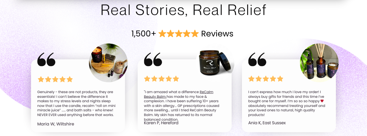 ReCalm Holistic brings 20 years of holistic wellness expertise into your home. We transform daily routines into sacred self-care rituals with meticulously handcrafted products, using the world's finest 100% natural botanicals to restore health, balance your mind, and elevate your spirit.